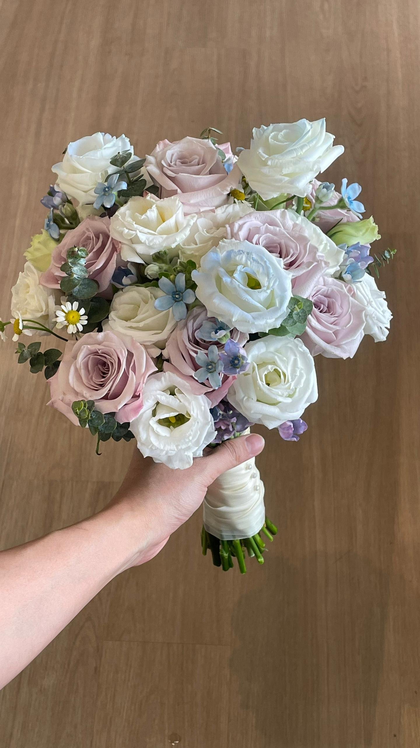 Eustoma, Roses, Oxy Blue, Chamomile and Fillers