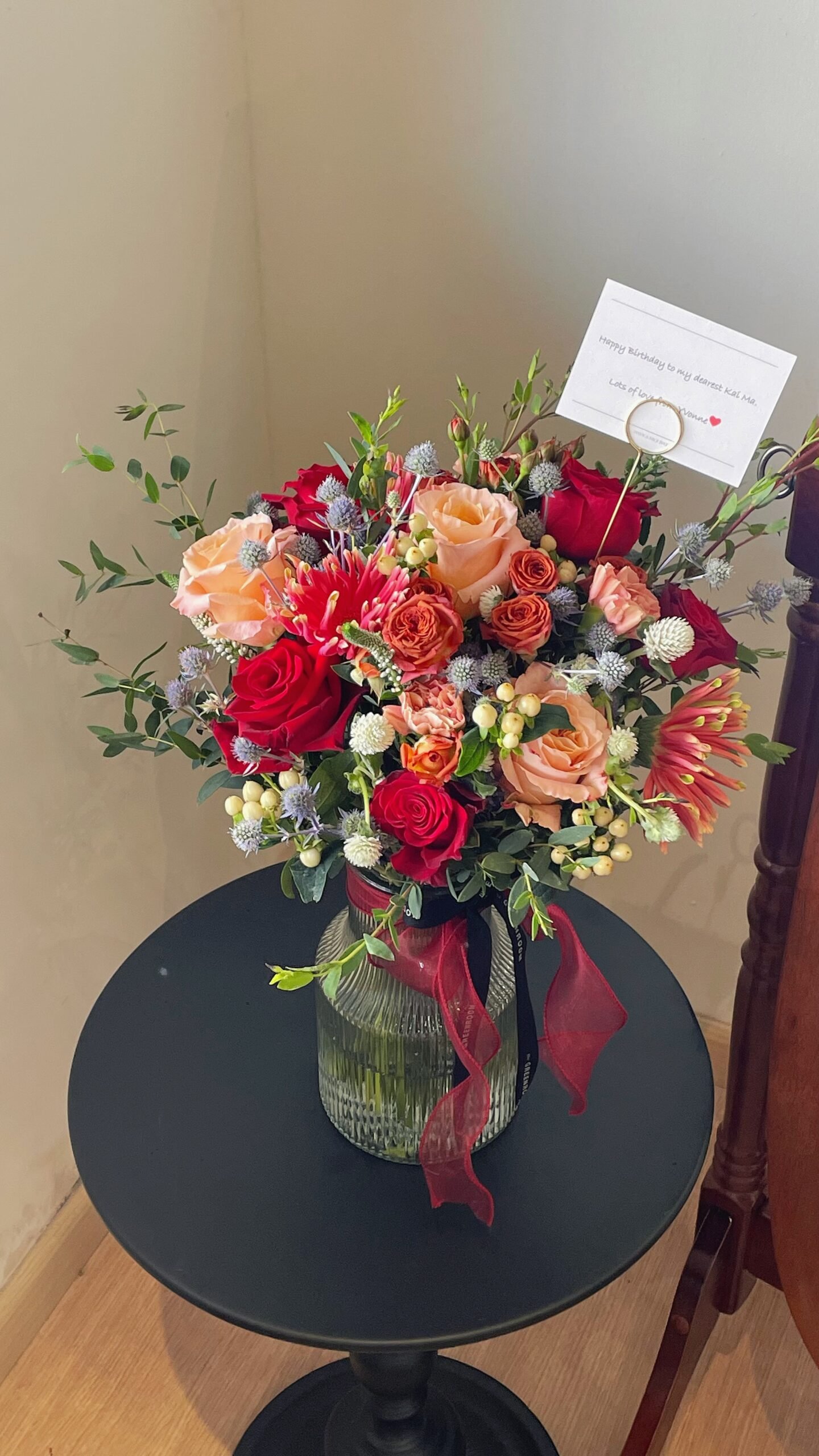 Chocolate Bubble Spray Rose, Eryngium, Rose, Daisy Gerbera and Fillers