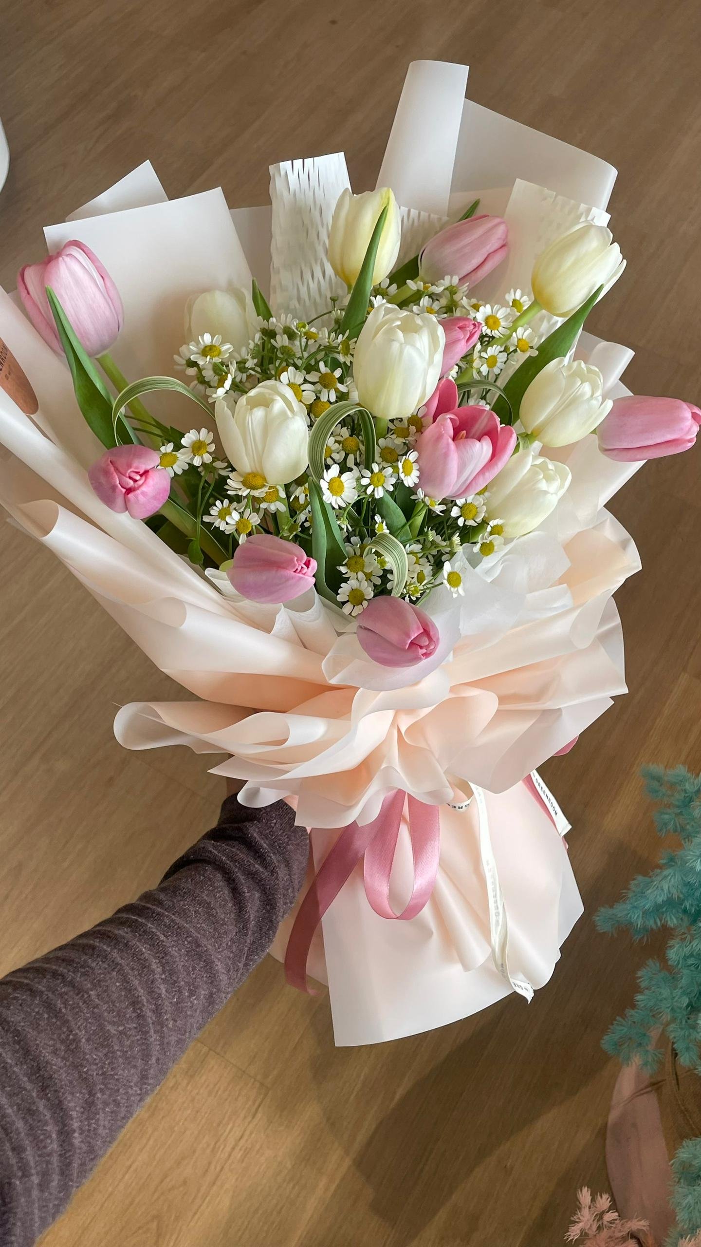 15 stalks tulips with chamomile