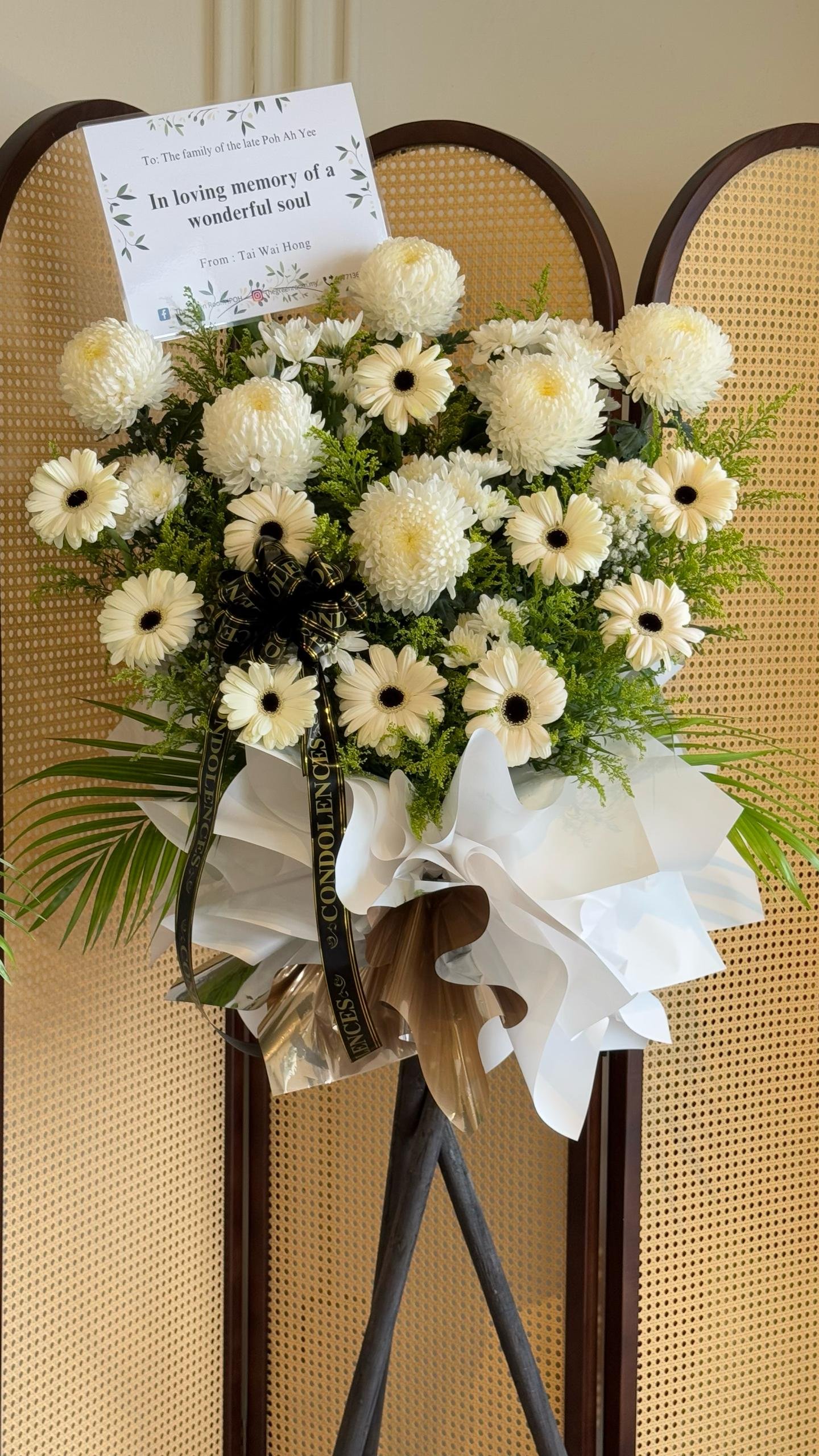 White Gerbera,White Mum Chrysanthemum,Green Chrysanthemum pompom and Filler