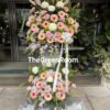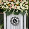 Blue Hydrangea, Bird of Paradise, White Lily, White Mum Chrysanthemum, White Chrysanthemum Pingpong, Green Anastasia, Green Anthurium, Daisy Gerbera, White Chrysanthemum Pompom and Fillers.