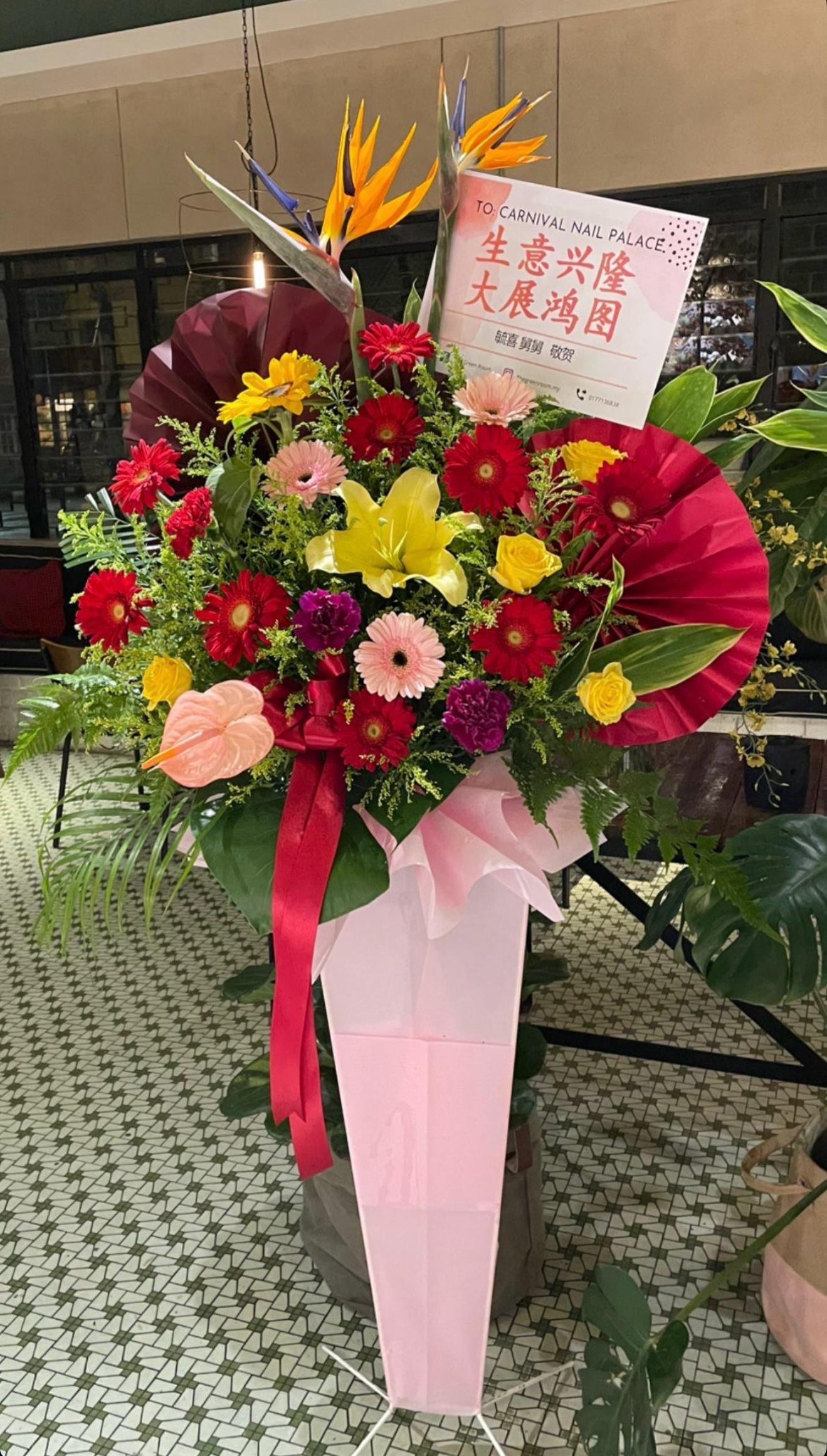 Bird of Paradise, Yellow Lily, Red and Pink Daisy Gerbera, Yellow Rose, Pink Anthurium and Fillers