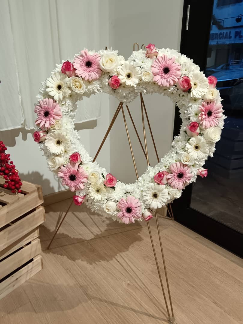 Blooms White Chrysanthemum Pompom, Daisy Gerbera, Roses White and Fillers. Size 80 cm (W) and x 150 cm (H) Perfect for Condolence, Funeral